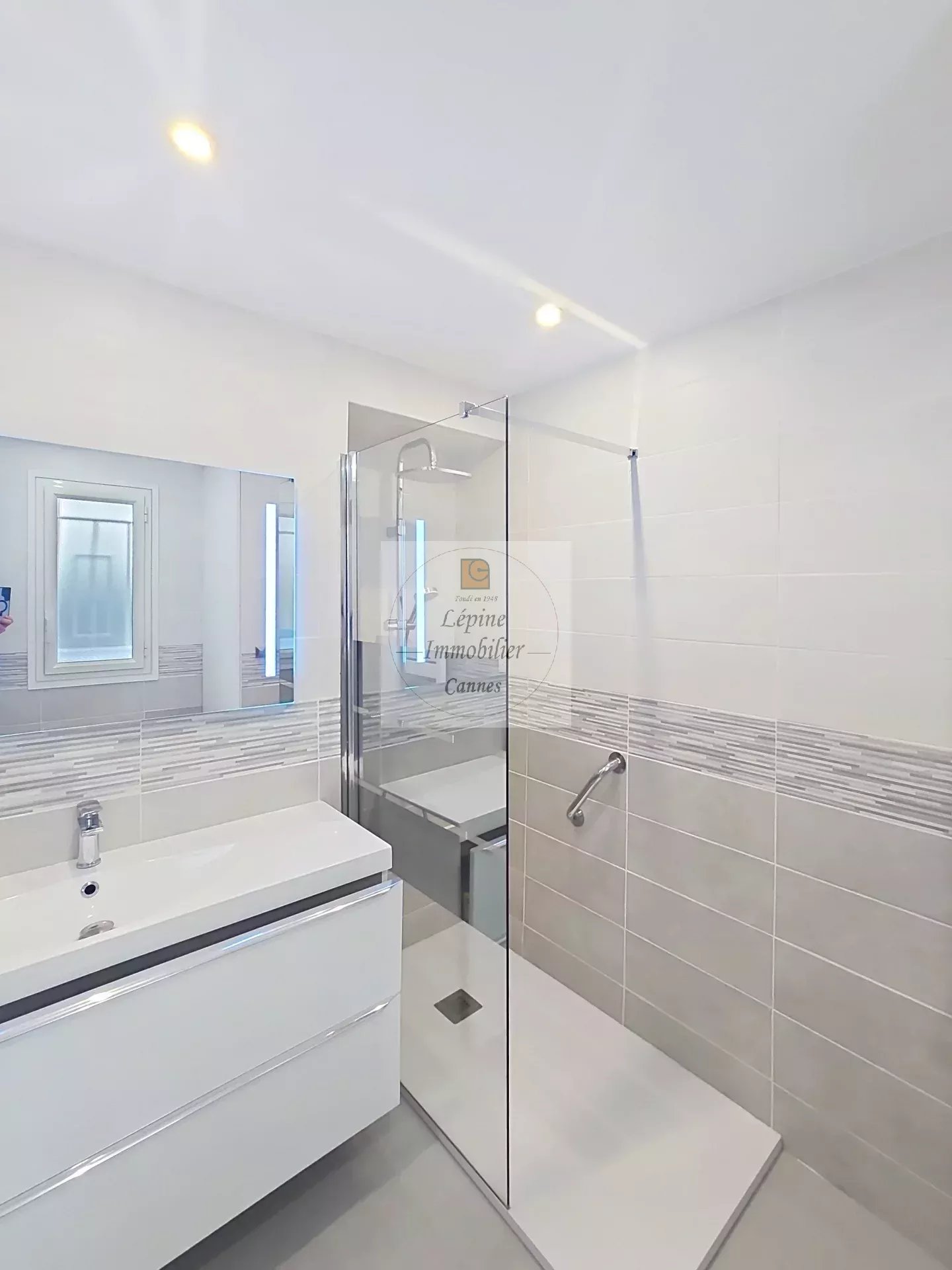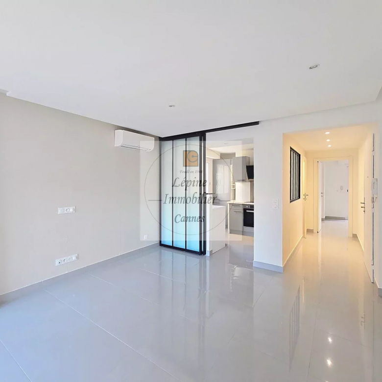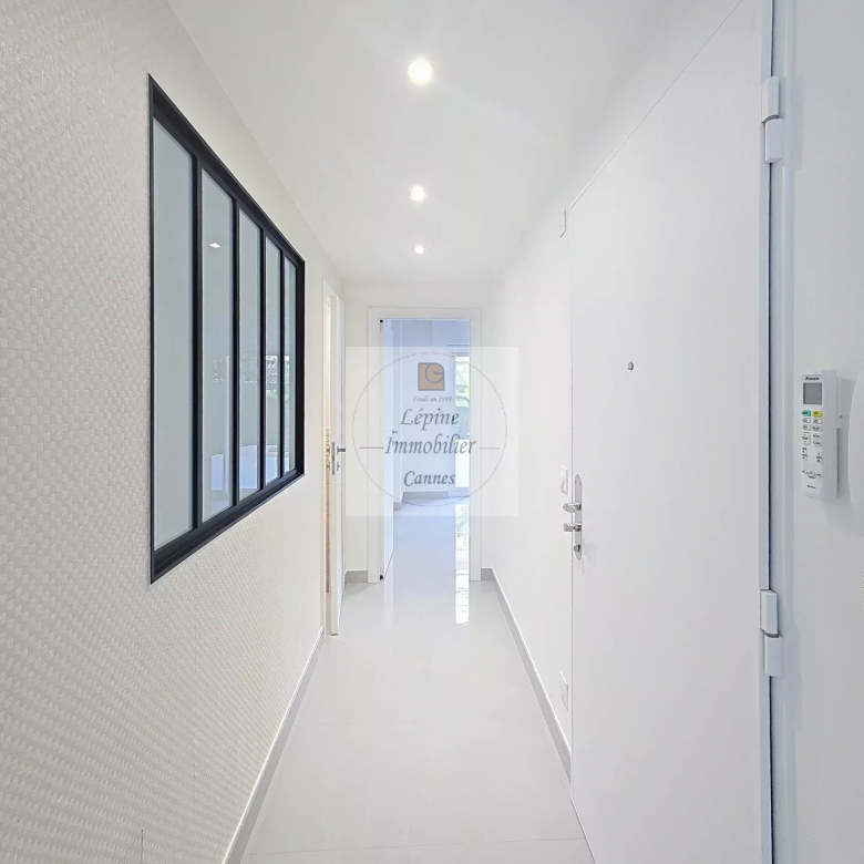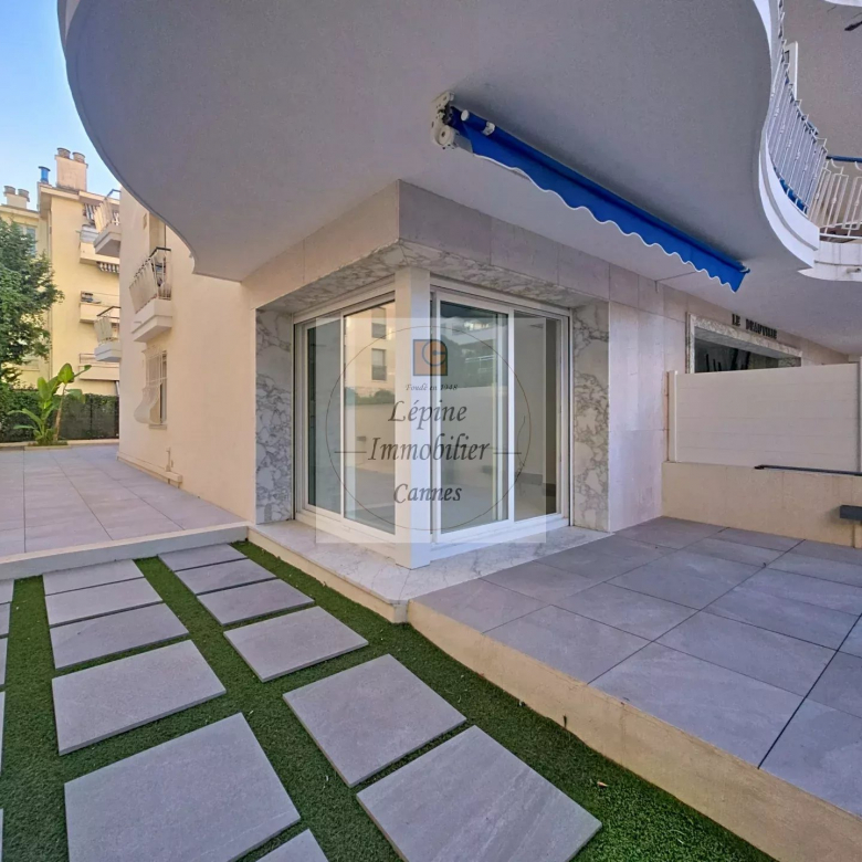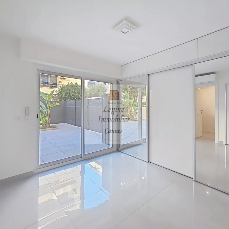 Au rez-de-chaussée d’un immeuble de standing avec Ascenseur, Location Appartement 2 Pièces vide de 51,12 m² refait à neuf avec son accès privé comprenant : Entrée, Séjour donnant sur terrasse et jardin accessible par un portail électrique privé, WC indépendant, cuisine équipée, chambre avec placard et salle d’eau attenante ouvrant sur la grande terrasse de 75 m² – Double vitrages – Climatisation réversible – Eau froide collective – Possibilité de stationner directement dans le jardin. –