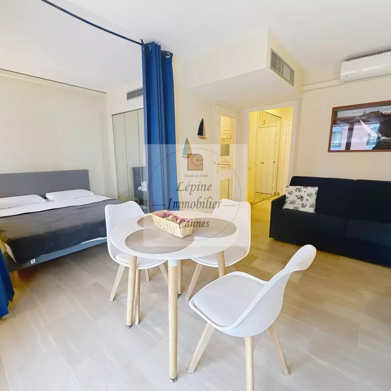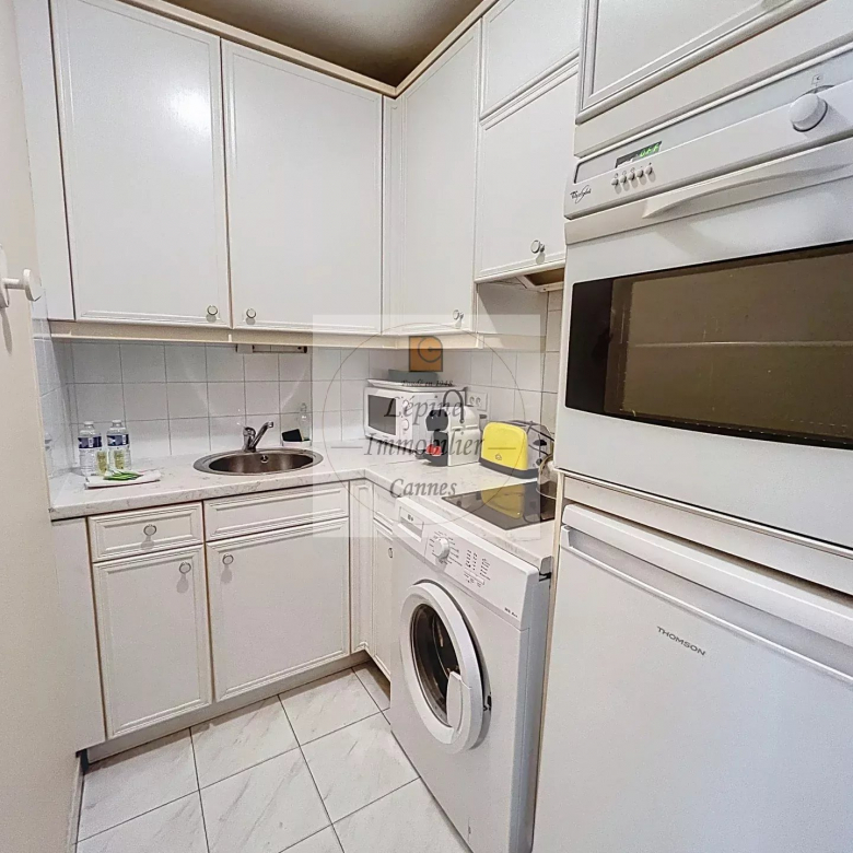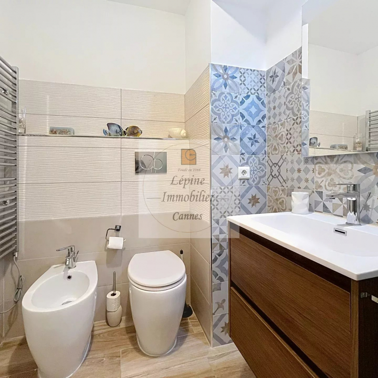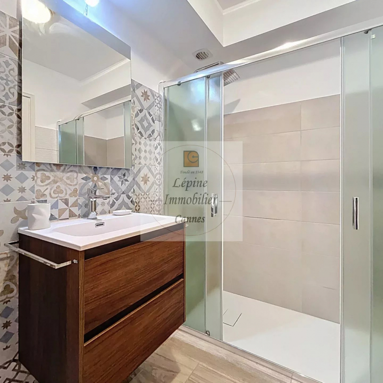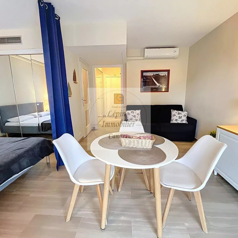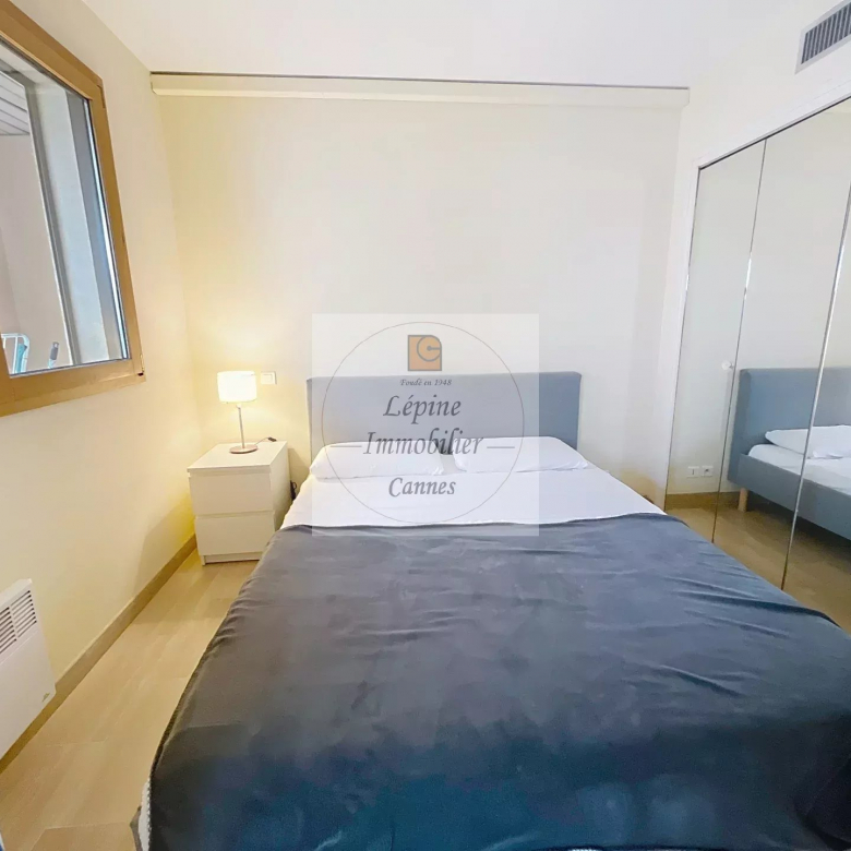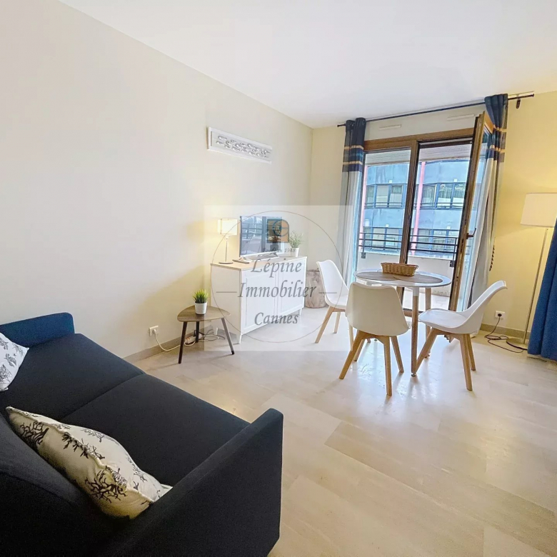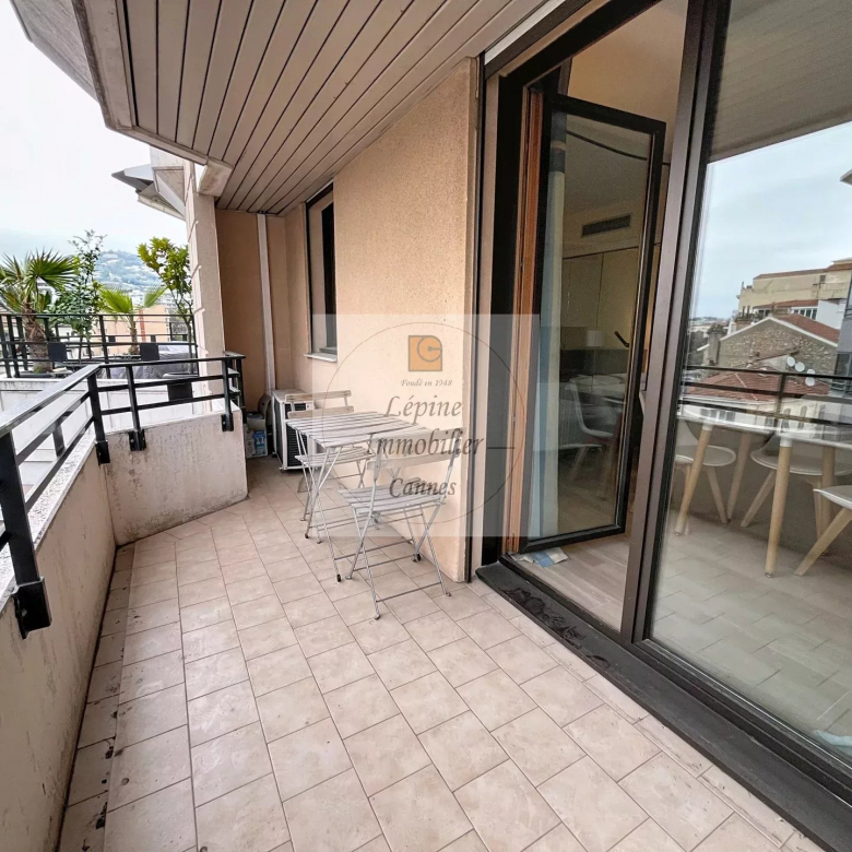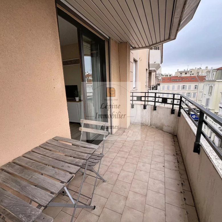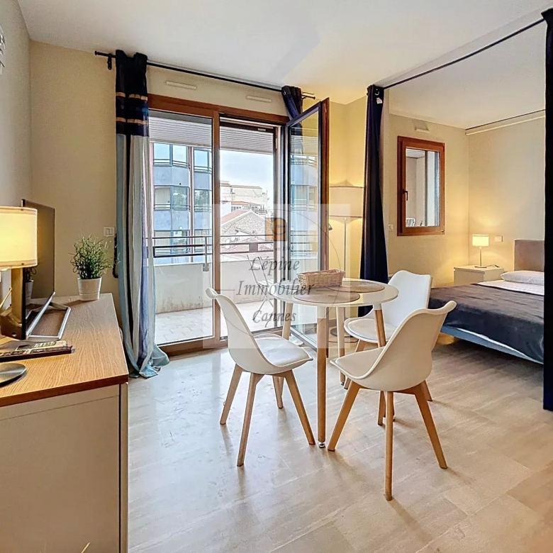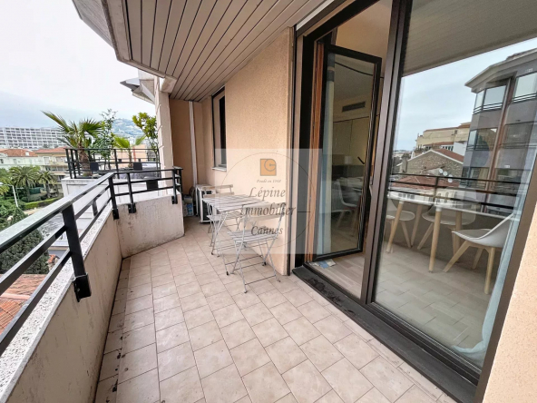 Cannes Banane – Élégant 2 pièces en étage élevé avec terrasse, cave et mobilier inclus.
