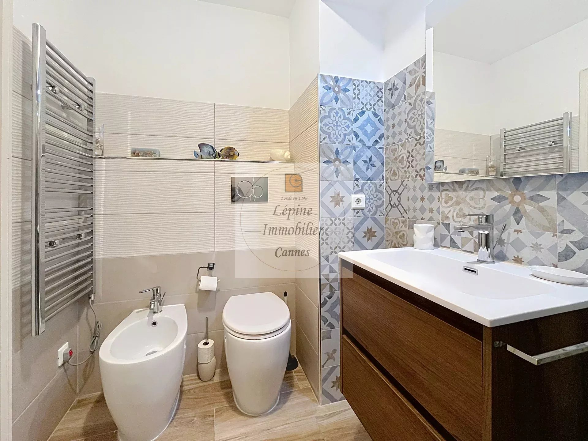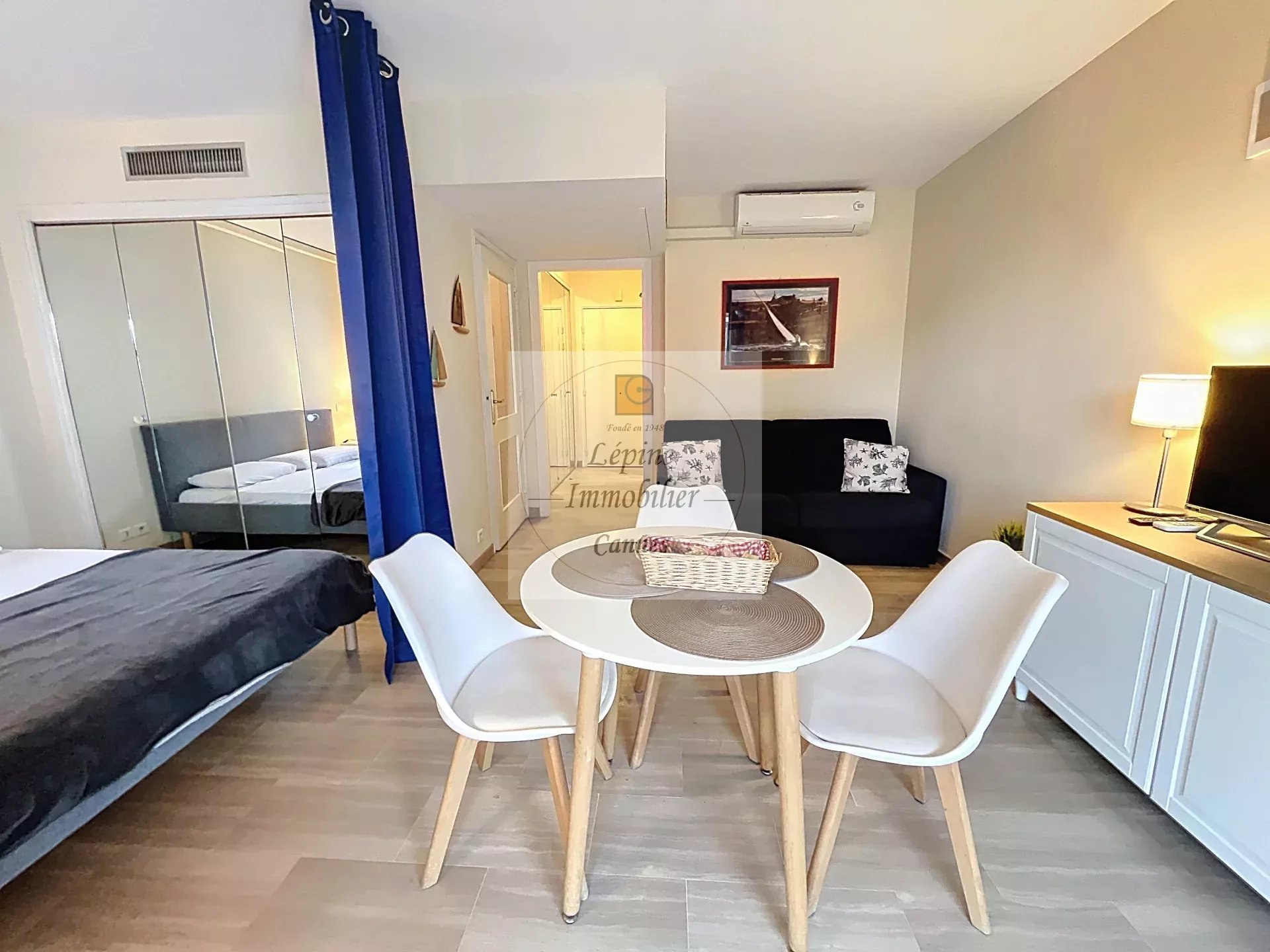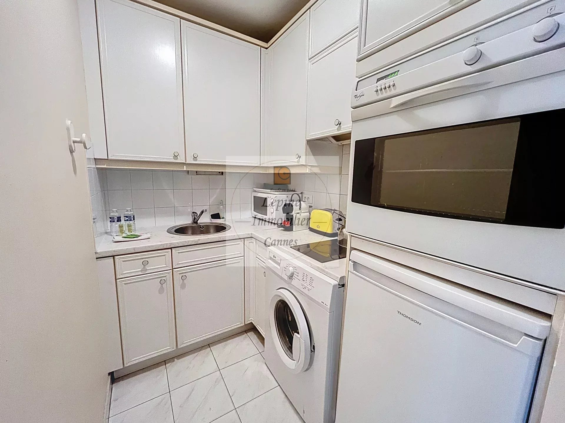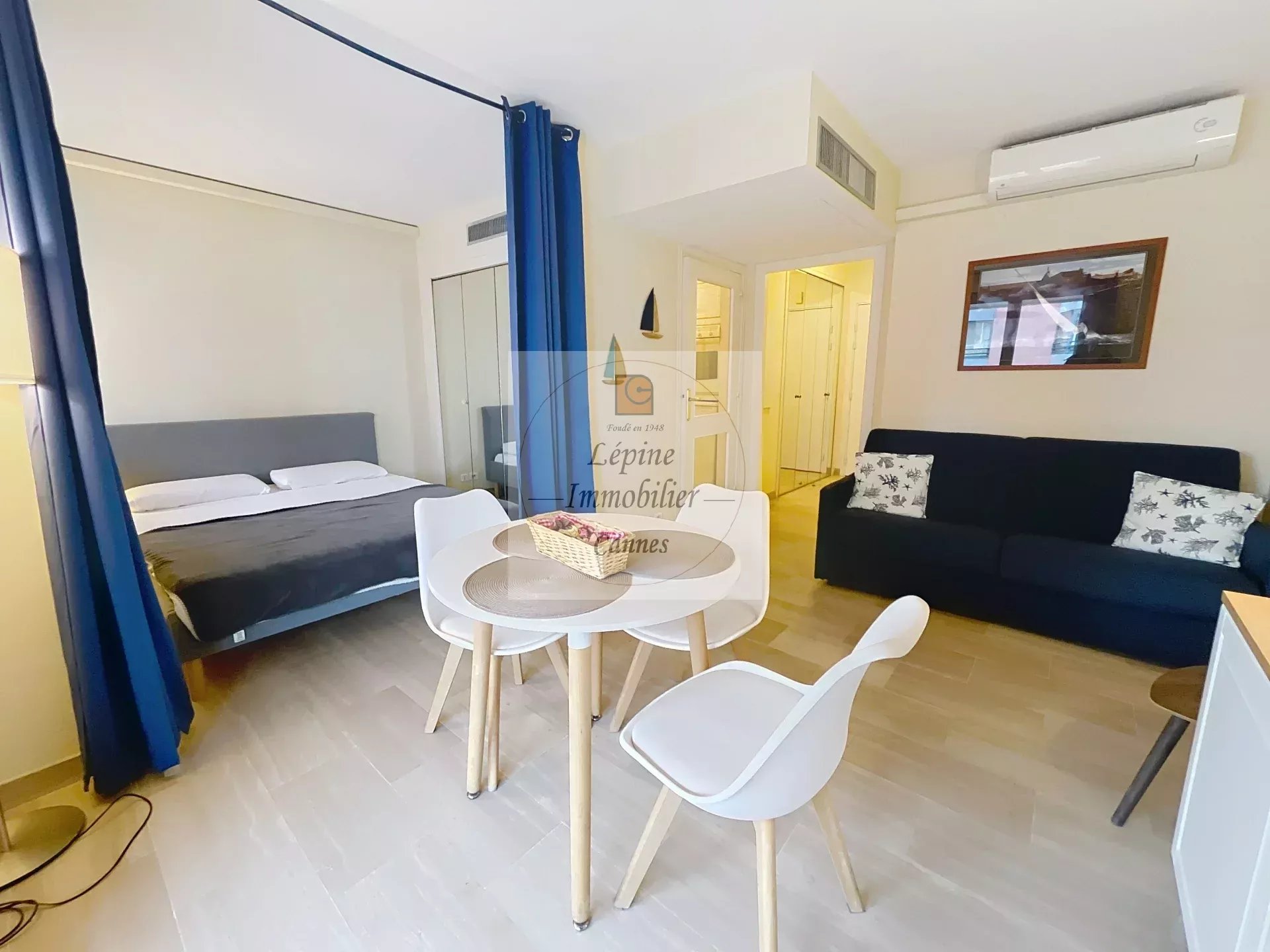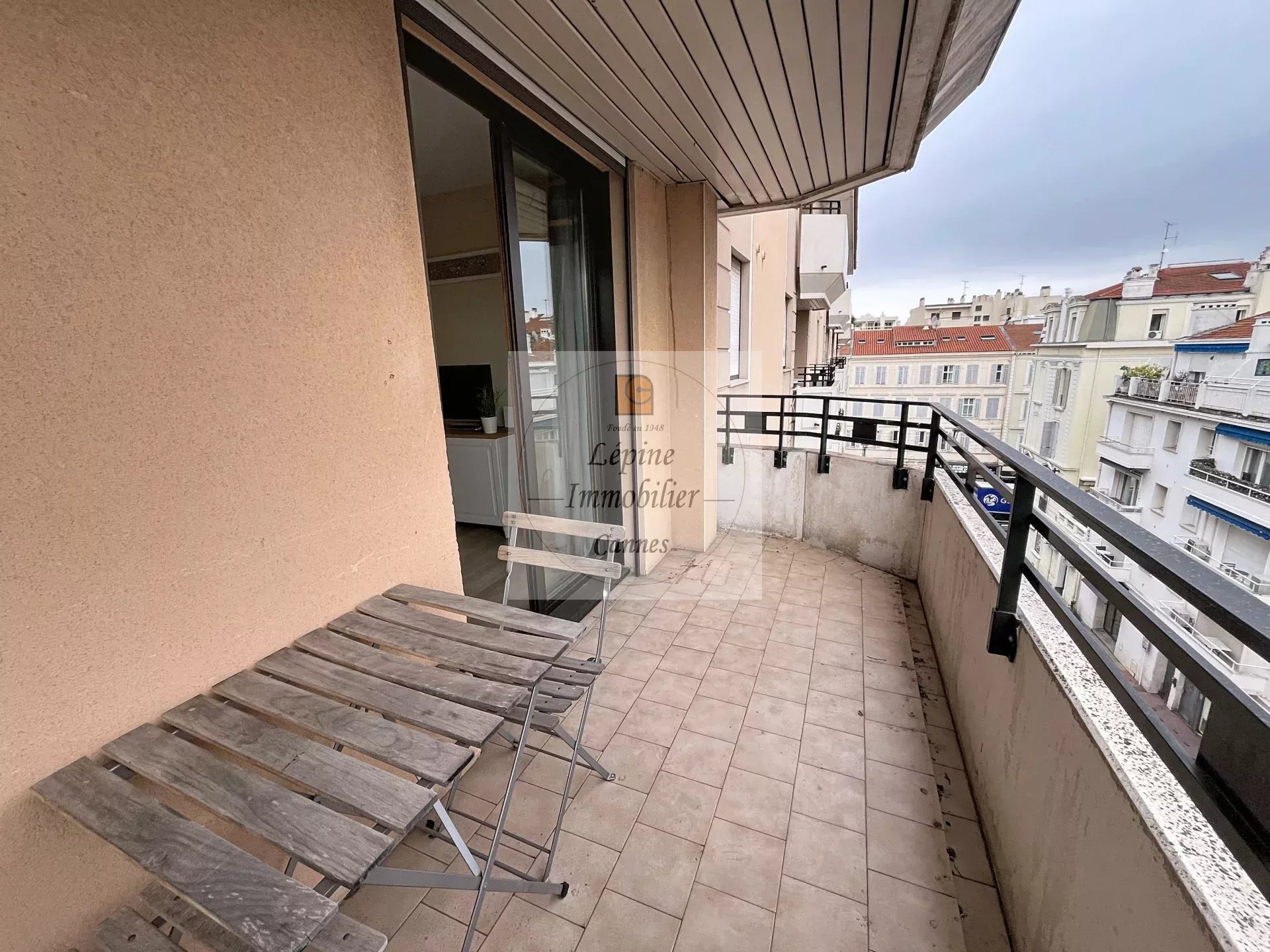 Cannes Banane – Élégant 2 pièces en étage élevé avec terrasse, cave et mobilier inclus.