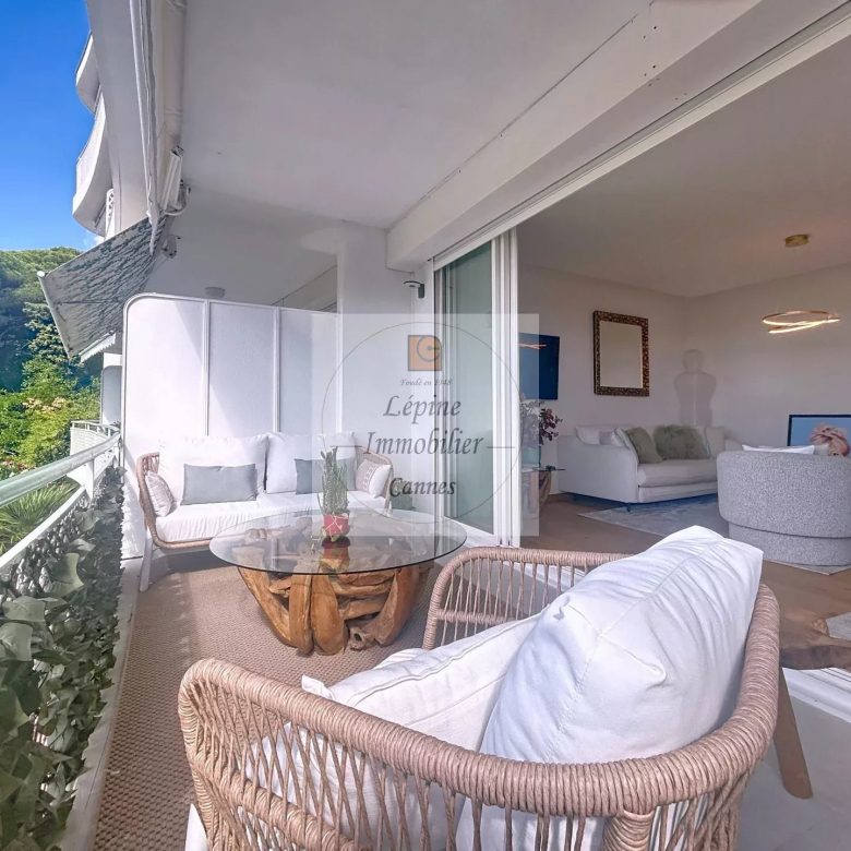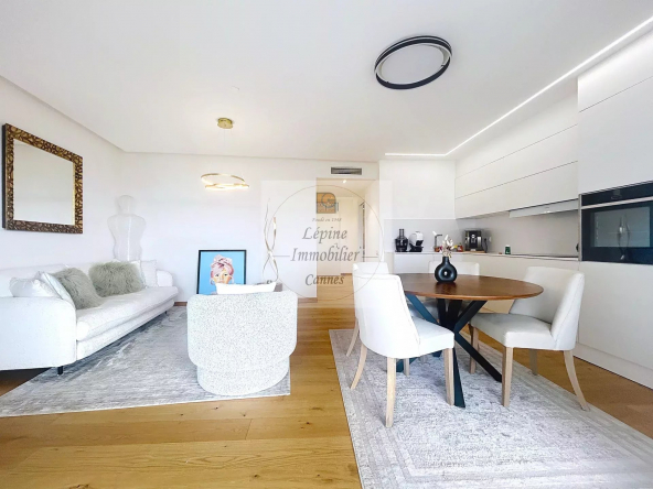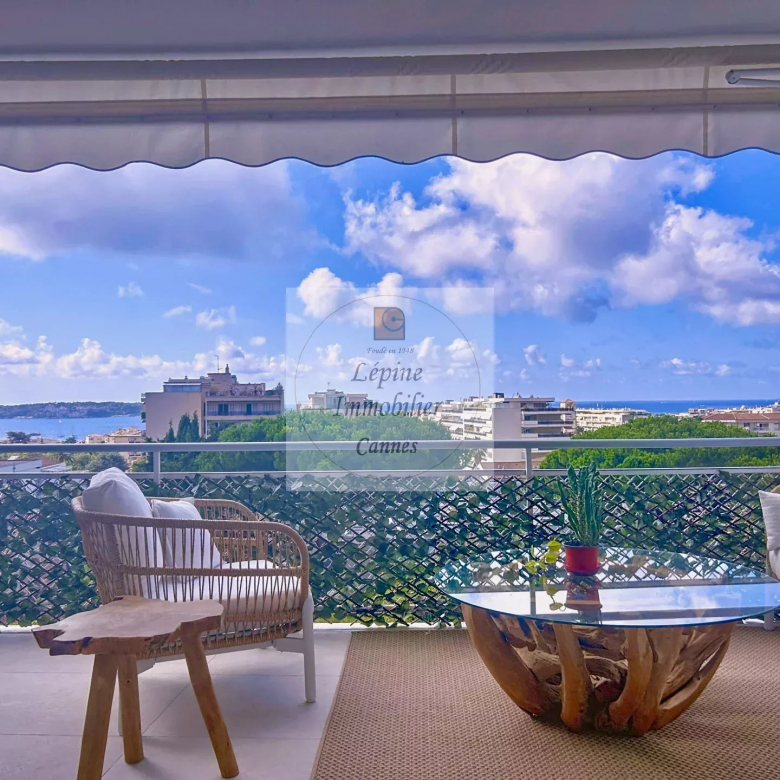 Superbe appartement 2 pièces de standing, bénéficiant d’une vue mer panoramique sur la Baie de Cannes et les Îles de Lérins.
