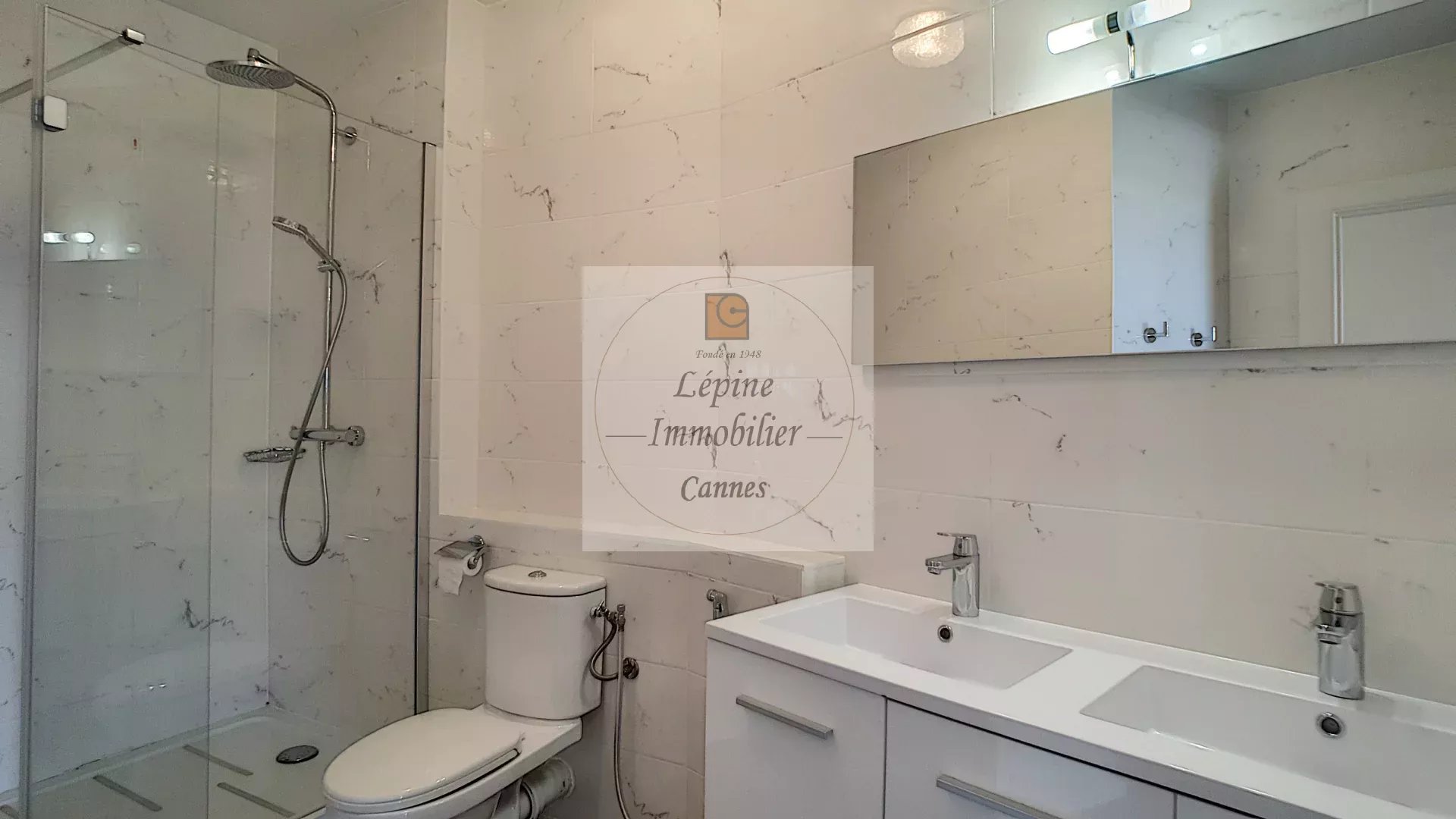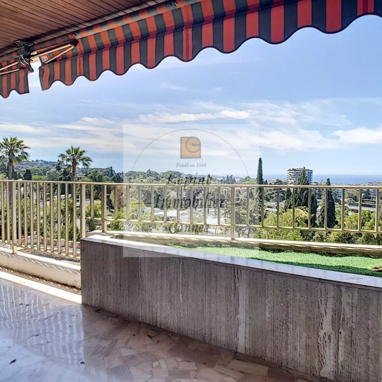 Location grand Appartement 2 pièces vide et traversant avec vue mer et verdure de 95.32 m², comprenant : Hall d’entrée avec Placard, Cuisine aménagée séparée, Bureau ouvrant sur Balcon exposé Nord de 11 m² env., grand Séjour, Chambre avec Placards, les 2 pièces ouvrant sur Terrasse de 23 m² env. exposée Sud donnant sur le Parc , Dressing, SDE avec WC, Toilettes – Eau froide/chaude et Chauffage collectifs – Cave en S/S – Parking collectif et Grand garage –