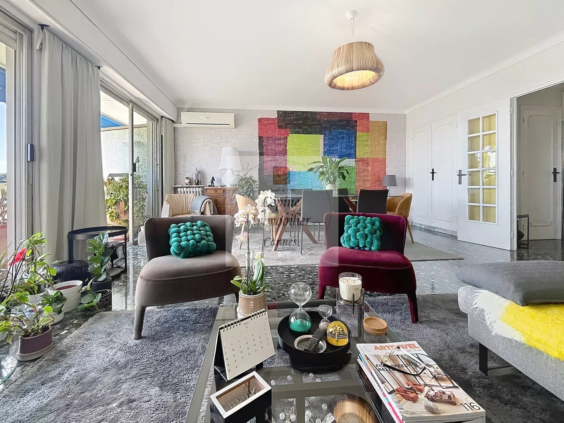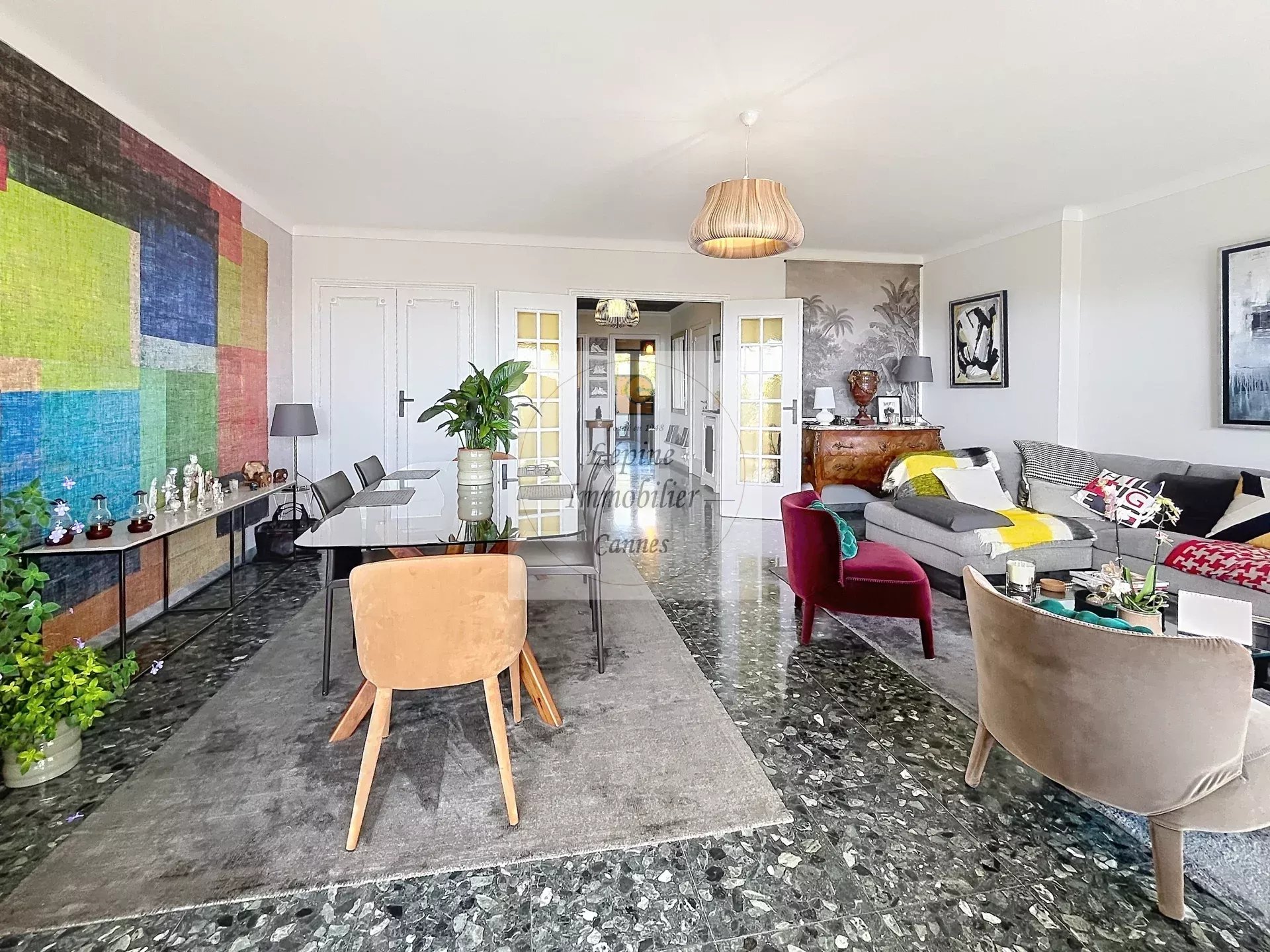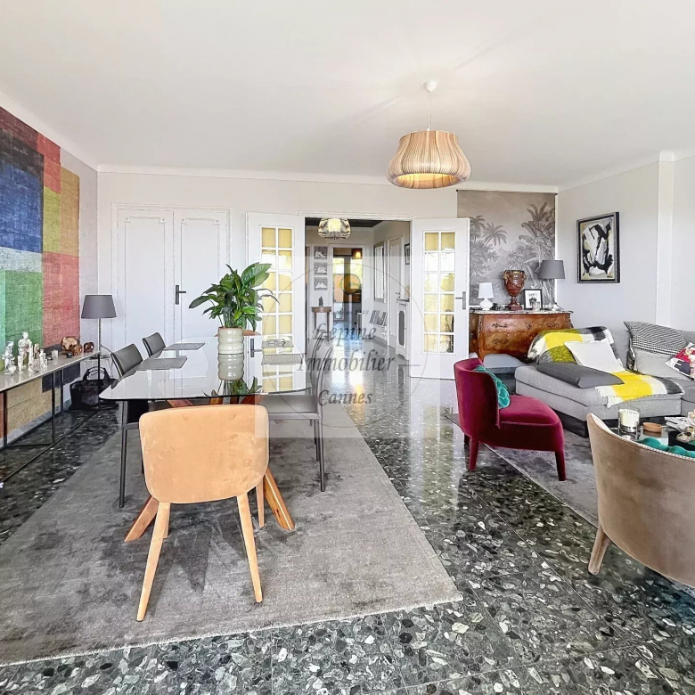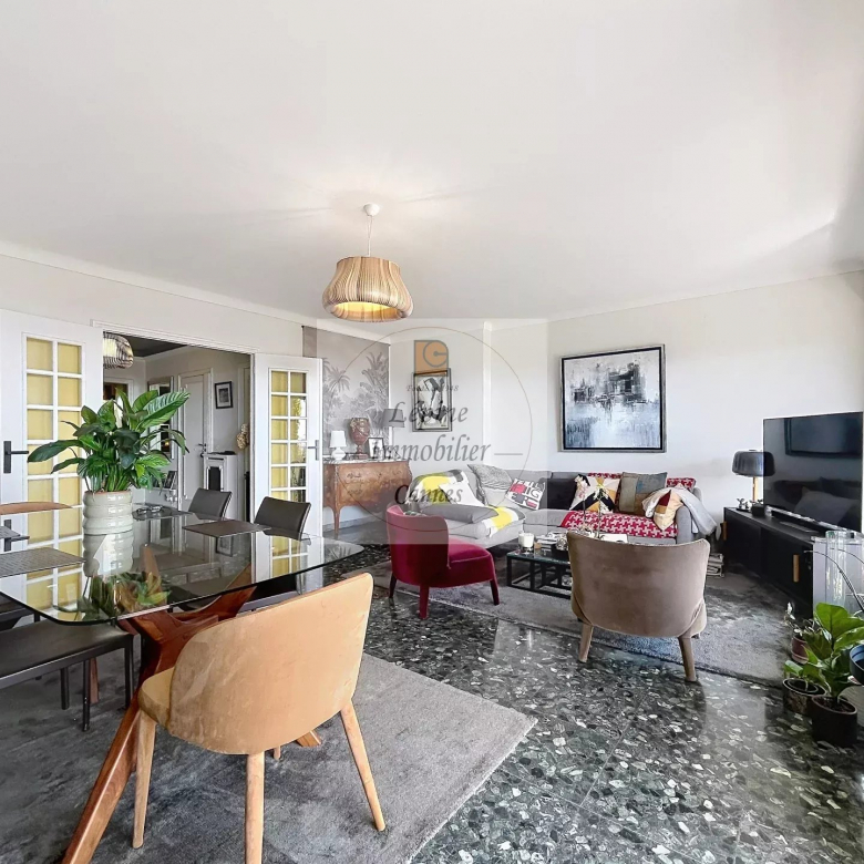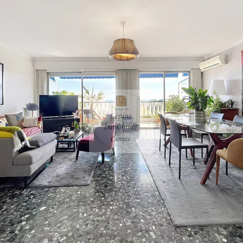 Côté Sud, un spacieux double séjour baigné de lumière s’ouvre sur une belle terrasse de 13m² avec vue mer.