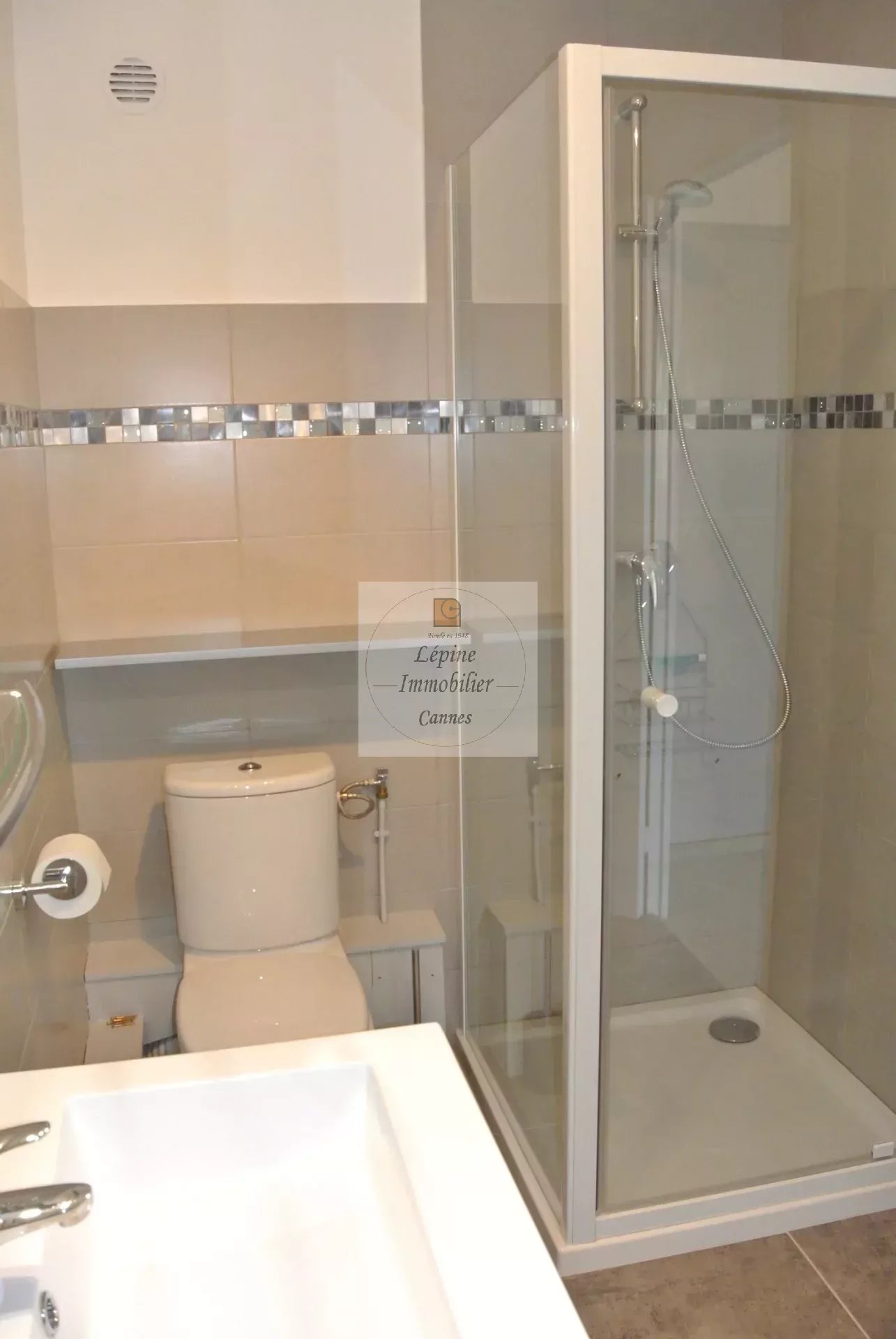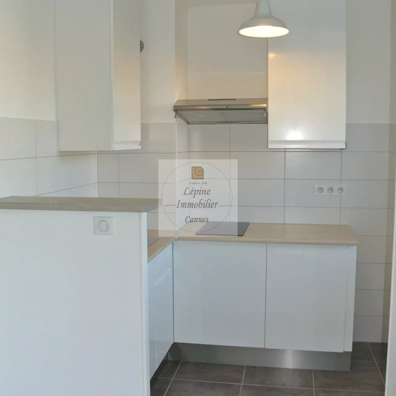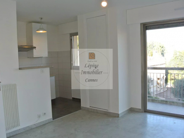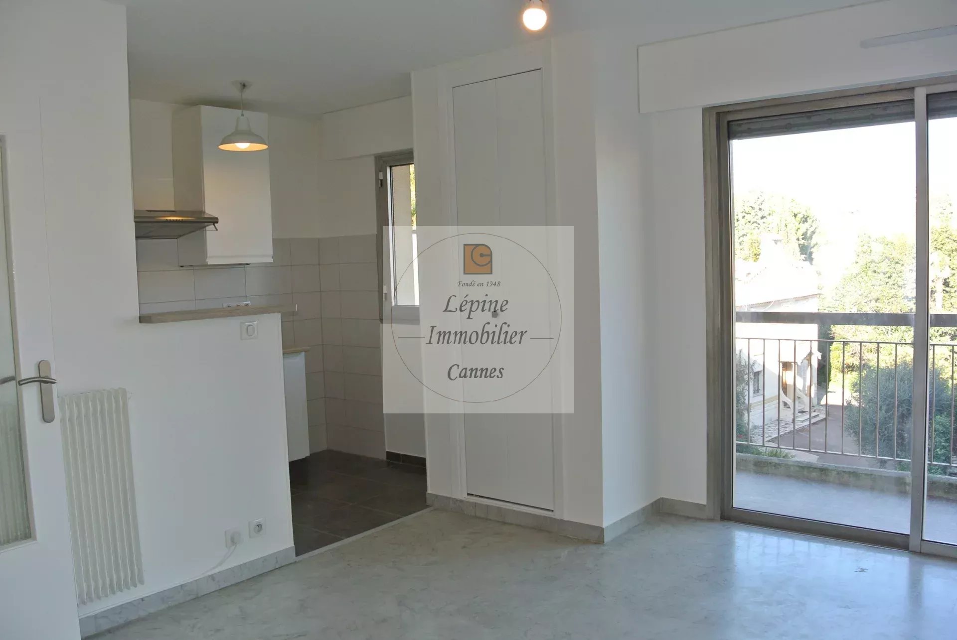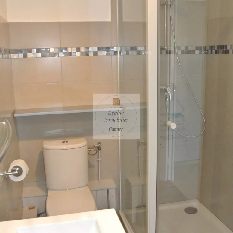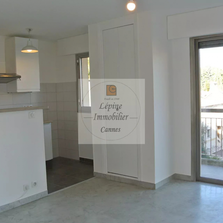 In Le Cannet, near the Lycée Carnot, on the 4th floor of a residence with lift, renting an empty T1 apartment of 25,72 m2, including: Entrance, shower room with WC, living room with cupboard and open kitchen, balcony of 6,24 m2 with clear view on greenery – Cellar – Water cold / hot and collective Heating –