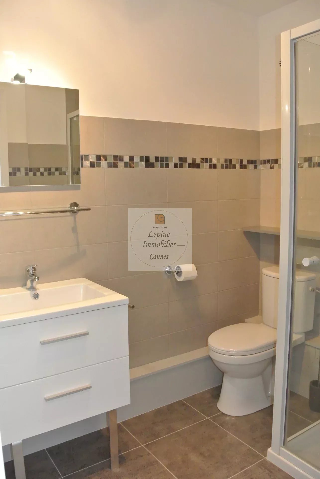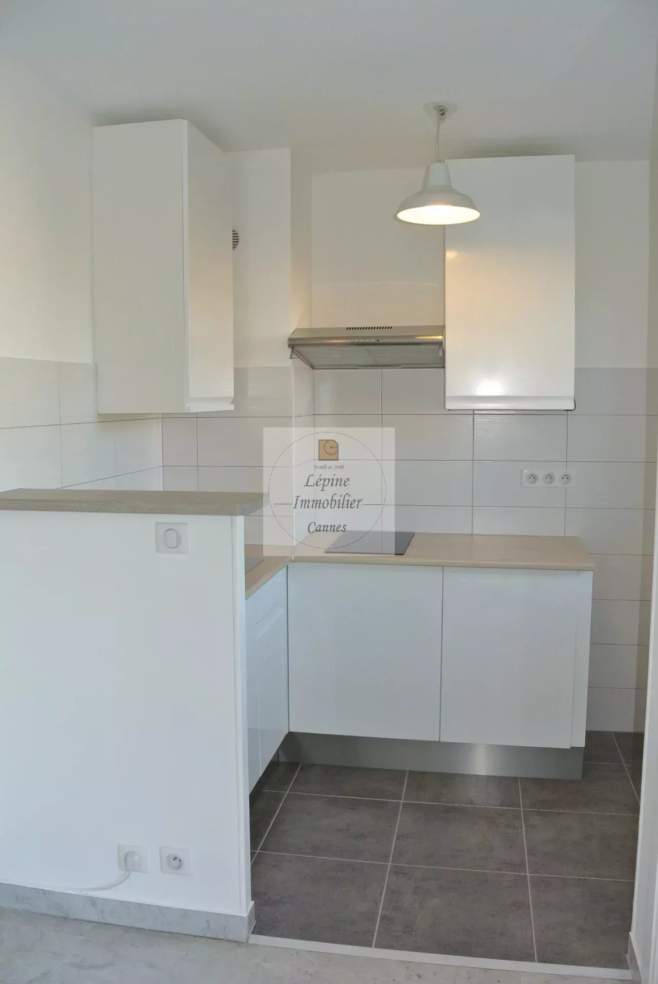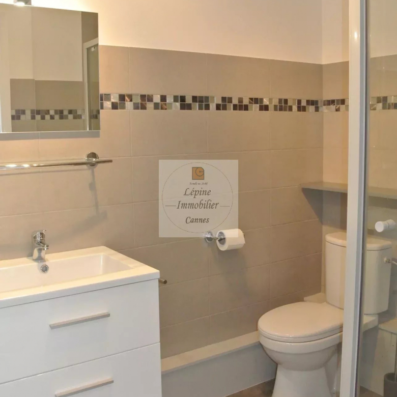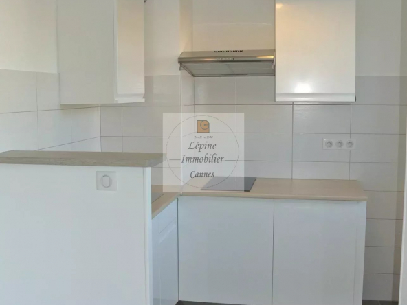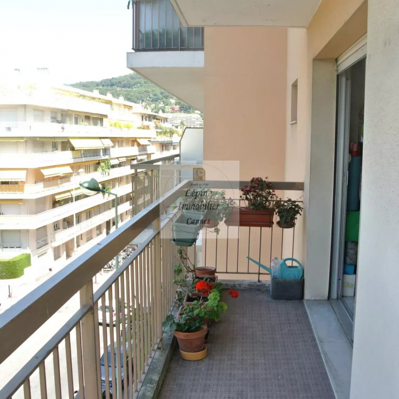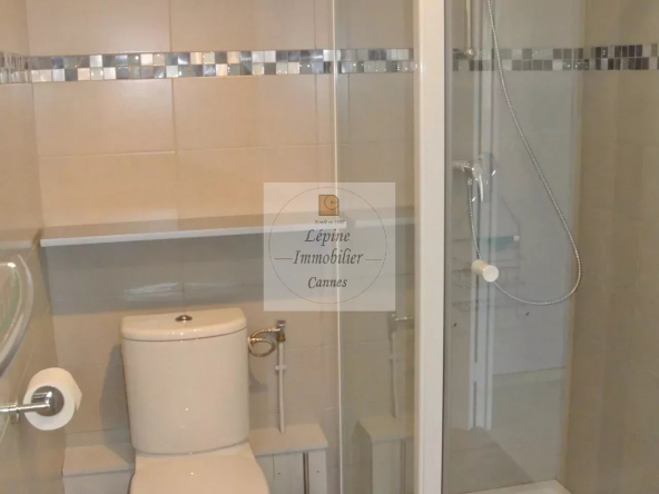 In Le Cannet, near the Lycée Carnot, on the 4th floor of a residence with lift, renting an empty T1 apartment of 25,72 m2, including: Entrance, shower room with WC, living room with cupboard and open kitchen, balcony of 6,24 m2 with clear view on greenery – Cellar – Water cold / hot and collective Heating –