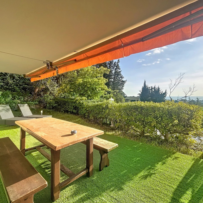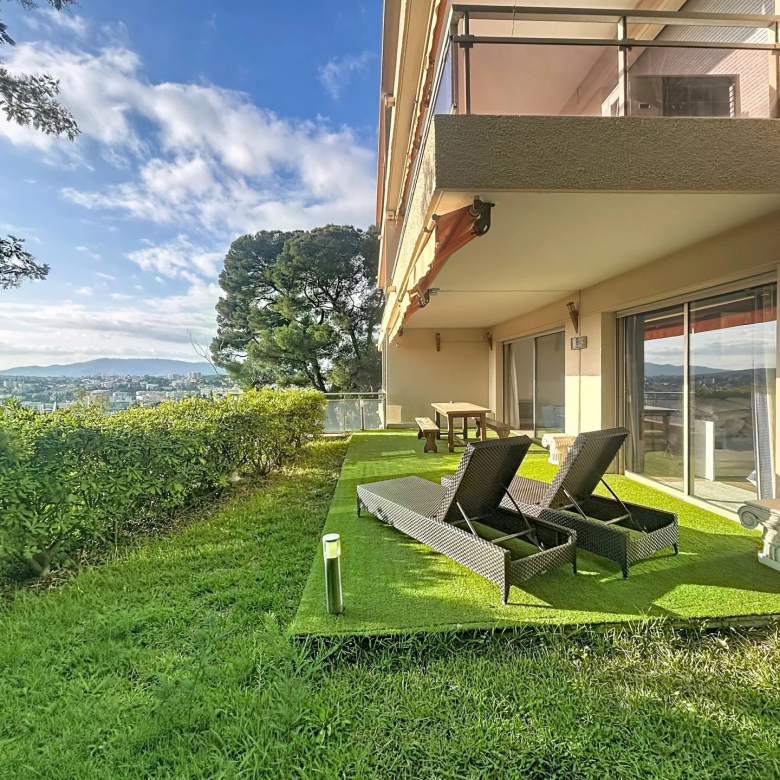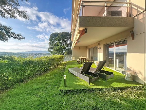 06110 LE CANNET- secteur PEN CHAI- Dans un quartier recherché et au sein d’une copropriété de standing sécurisée avec gardien et piscine, venez découvrir ce spacieux 3 pièces de 95m² avec jardin suspendu de plus de 100m² offrant une belle vue mer. L’appartement offre des beaux volumes avec un large séjour avec coin salle à manger et espace cuisine ouverte, le tout donnant sur la terrasse/jardin, deux chambres ensuite avec salle de douche et salle de bain/wc. Ainsi qu’un toilette invité, un dressing et de nombreux placards. Le bien est vendu avec un garage et une cave. N’hésitez pas à venir le visiter.