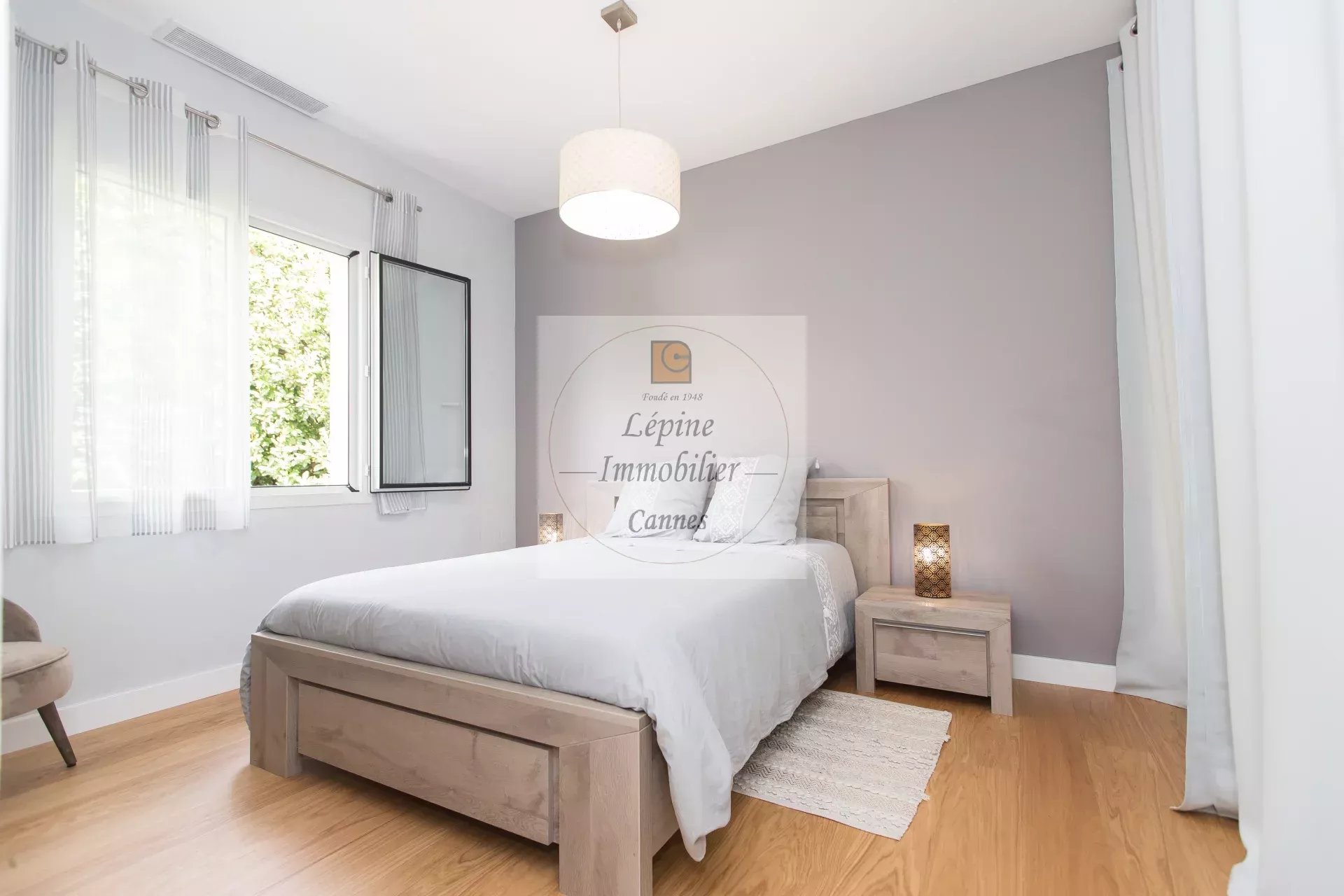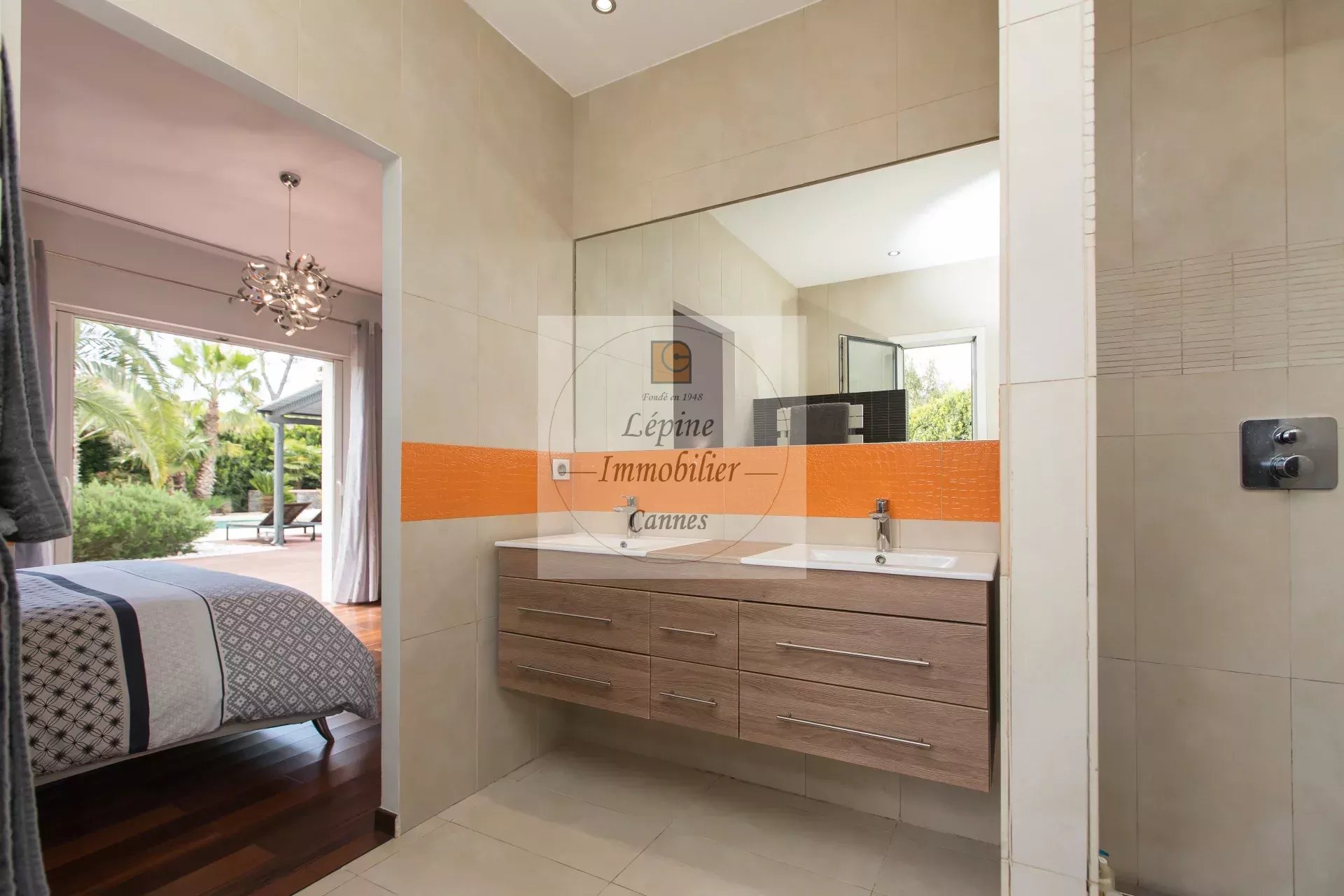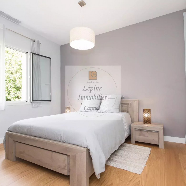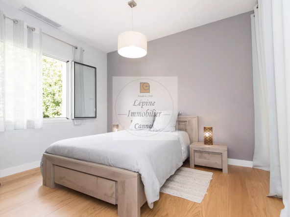 MOUGINS : Située dans un quartier résidentiel de MOUGINS, à quelques minutes de CANNES et à proximité de l’étang de FONTMERLE, Superbe villa de plain-pied à l’architecture moderne et épurée sur terrain plat de 2416 m².