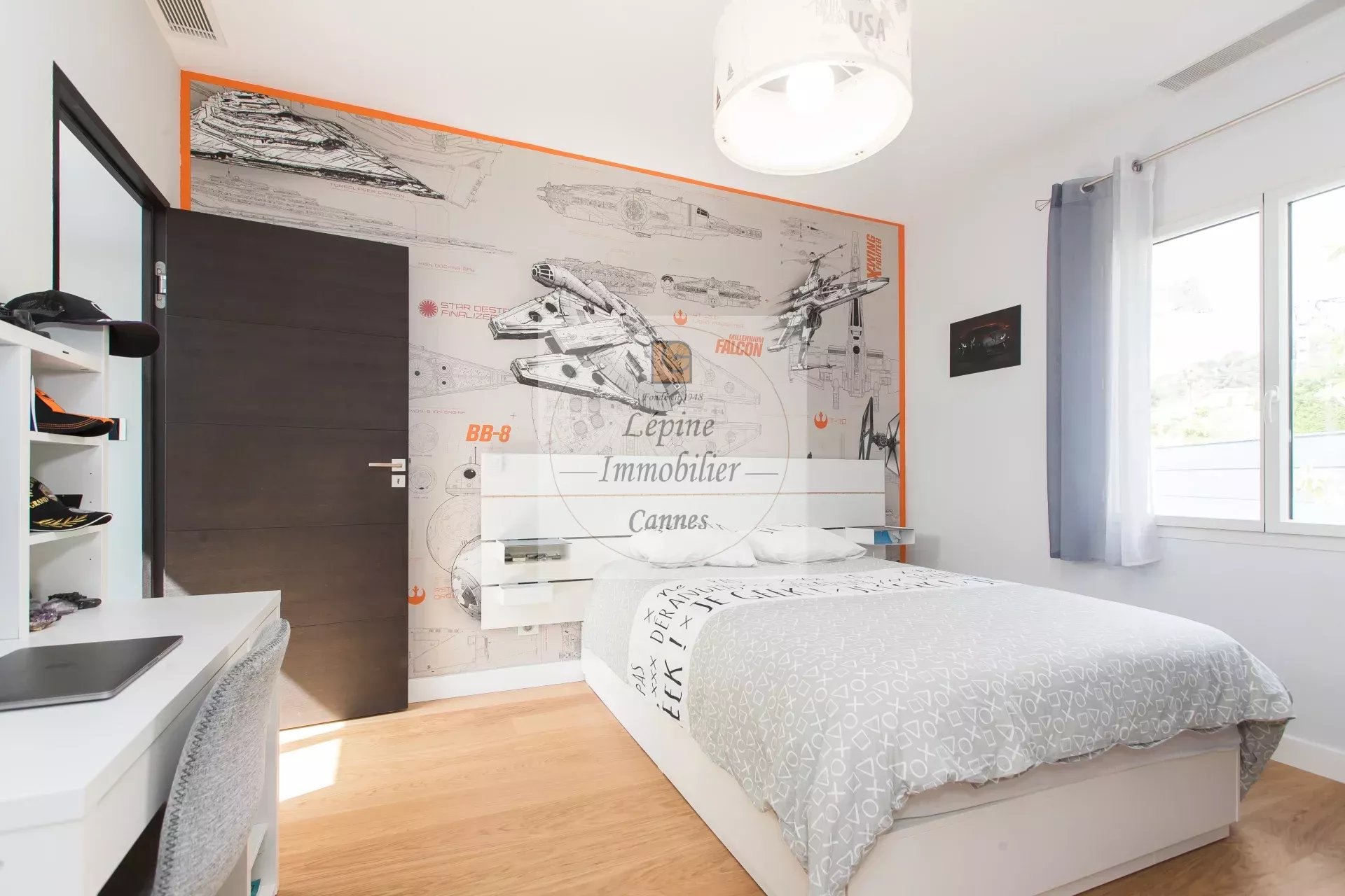 La villa est entièrement climatisée et équipée d’un système de domotique. Sous-sol aménagé en salle de jeux et de musique, avec cave et buanderie. Un double garage et des stationnements extérieurs viennent compléter ce bien qui grâce à ses volumes généreux, offre l’opportunité de créer une cinquième chambre !