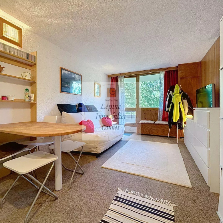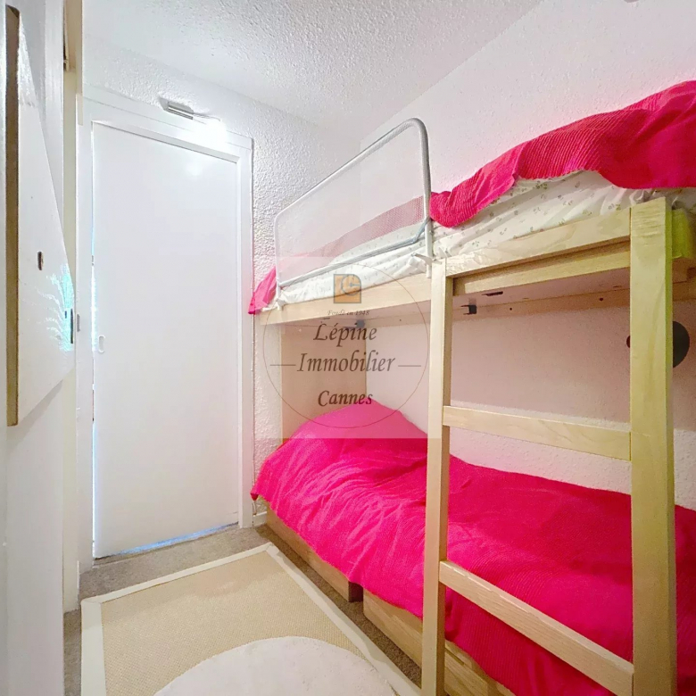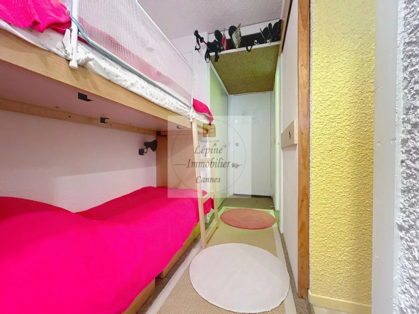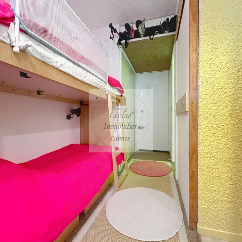 Isola 2000, quartier du Hameau, à 100m du funiculaire, un joli Studio au 3ème étage, près de 25m², proche de la piste Sierra. Le bien comprend une entrée avec coin nuit avec deux lits superposés, une pièce de vie donnant sur une terrasse exposée Sud/Ouest, vue montagnes, une salle de bain avec wc, un coin cuisine et de nombreux rangements. UN WEEK-END PORTES OUVERTES EST ORGANISE du 3 au 5 OCTOBRE 2025 – MERCI DE TELEPHONER POUR RESERVER VOTRE VISITE